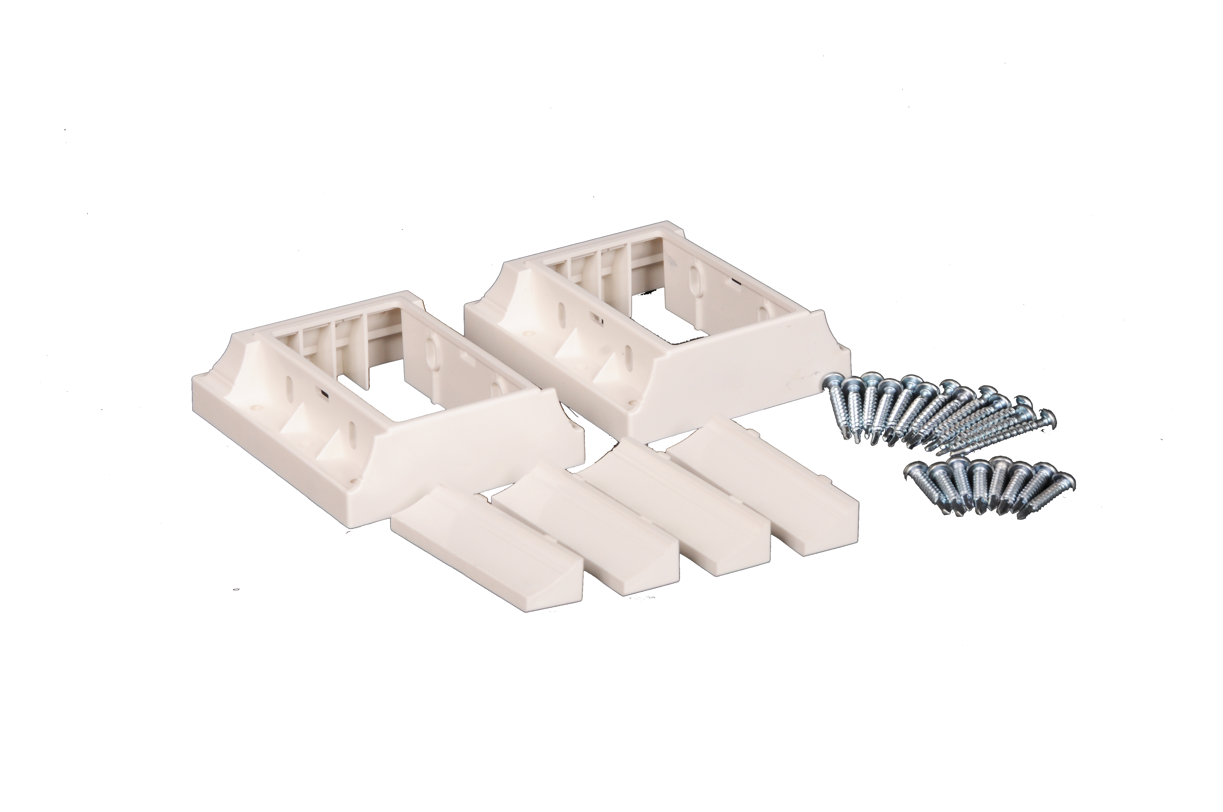 Includes: (2) ea. Brackets, (4) ea. Covers, (12) ea. #10 x 1-1/2 Phillips Pan Head Screws, (8) ea. #10 x 1.000 Phillips Pan Head Screws